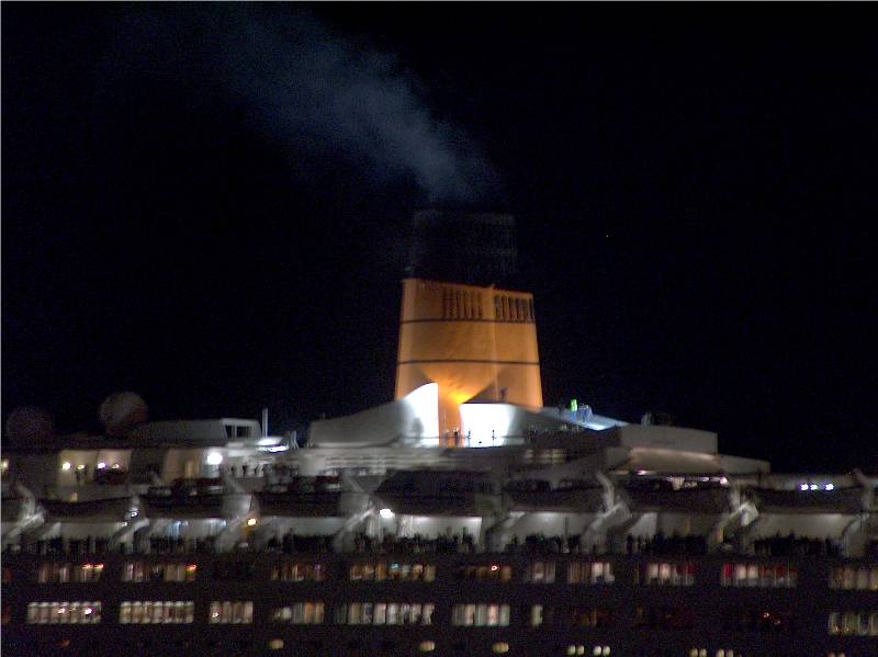 11th November 2008 saw the final call of QUEEN ELIZABETH 2 at her home port of Southampton. The pictures on this page show her arriving in the morning following her brief grounding in the Solent, alongside during the day and sailing after dark. Click on a thumbnail to see the larger image.